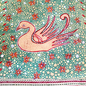 This sari art is a work in progress and an evolving one too. It started with the drawing of a stylized swan. Then I decided to put it in relief with lots of circles around it. In the zentangle vocab these circles are called tipple, which incidentally is this week's challenge at I am the Diva. It is one of my favorite tangles.
